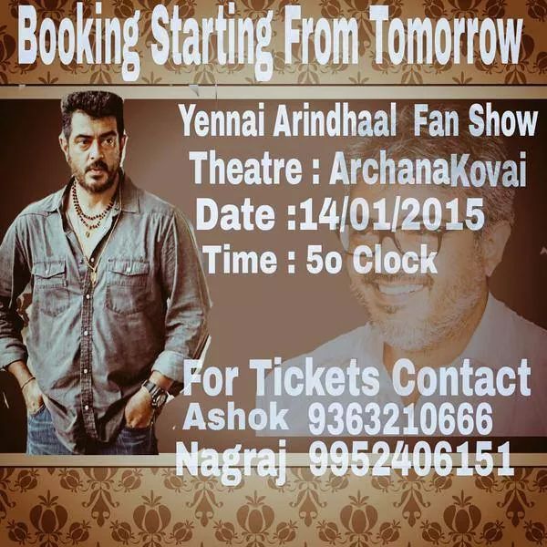 Mass Ajith On Twitter Booking Starts From Tomorrow At Coimbatore Archana Theater Yennai Arindhaal Http T Co Lz3e6eulmf - More less improve this listing ».