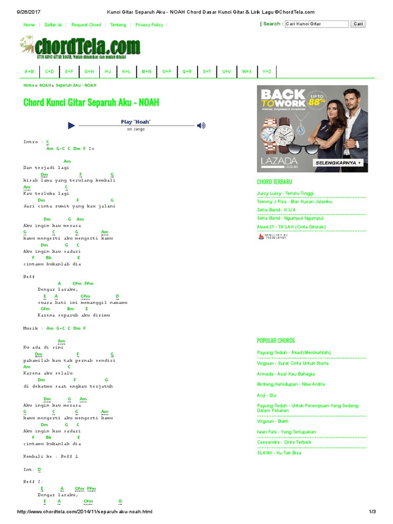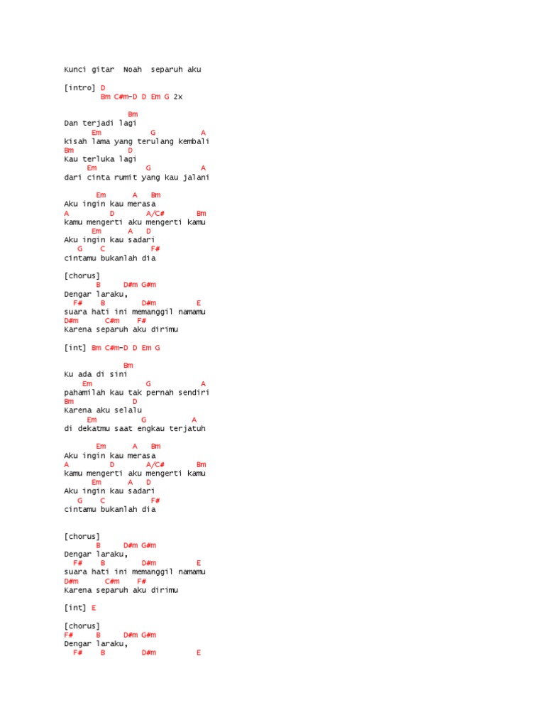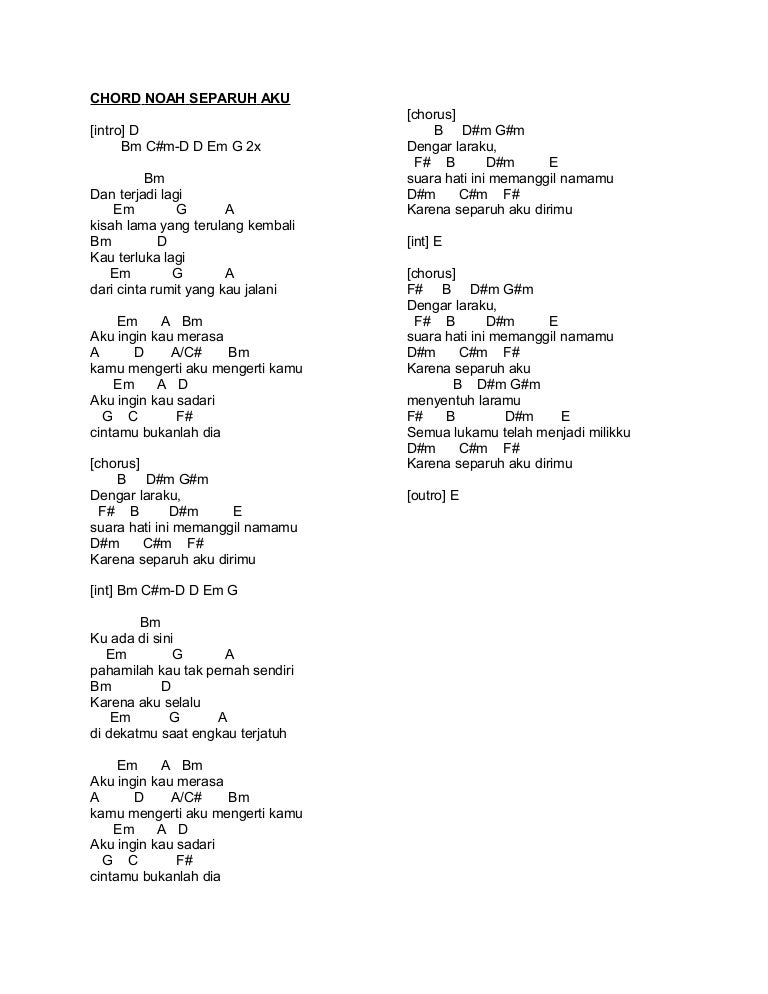 Chord Lagu Noah Separuh Aku : Choose and determine which version of separuh aku chords and tabs by noah you can play. Chord Lagu Noah Separuh Aku : Separuh aku by noah chords.