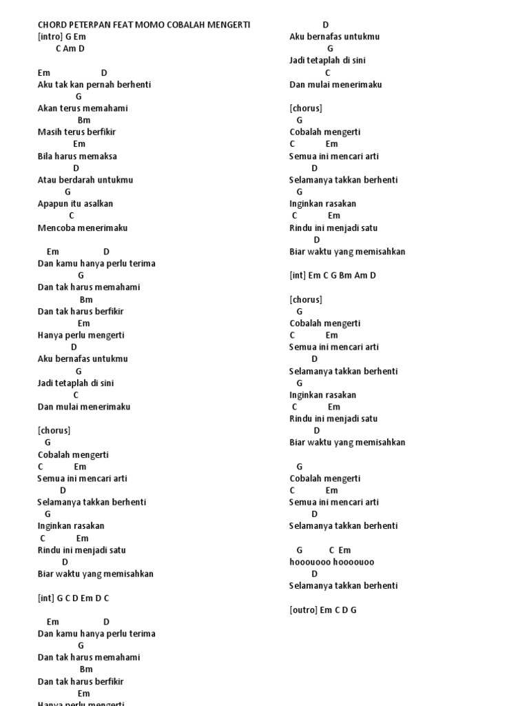 Lirik Chord Lagu Mix 3 - G am semua tentangmu em c tentangku hanya harap, g am jauh ku jauh em c g mimpiku dengan inginku.……