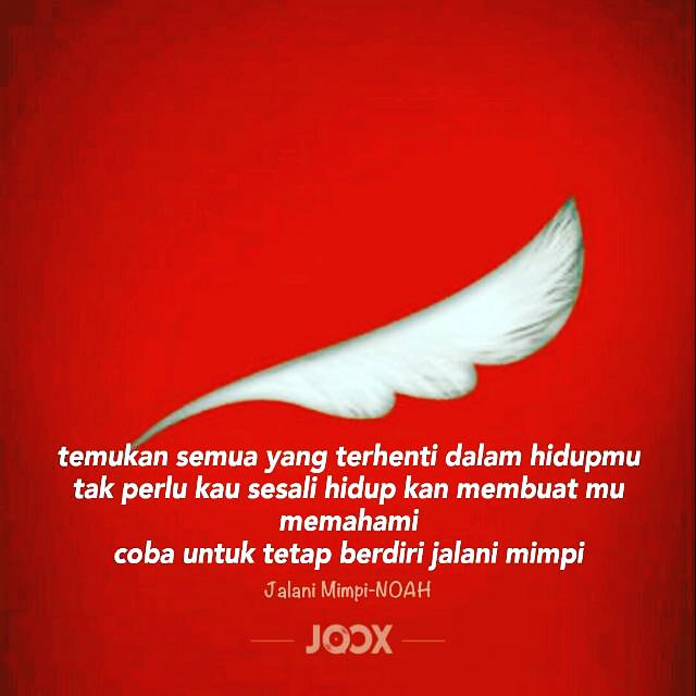 Lirik Lagu Noah Jalani Mimpi : Tak perlu kau sesali hidup kan membuatmu memahami coba untuk tetap berdiri jalani mimpi. Lirik Lagu Noah Jalani Mimpi : Teruslah kau mencari waktu akan selalu mengobati.